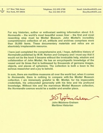 “NORMANDIE” - original, DVD production: history of SS NORMANDIE and relationship with Miottel Museum collection.